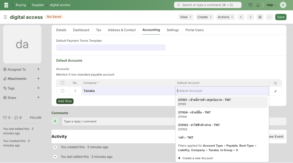 Depending on your plan, you can add multiple companies in your ERP Eazy instance. One Supplier can be used across multiple companies. In this case, you should define Company-wise Payable Account for the Supplier in the “Default Payable Accounts” table, i.e, add multiple rows.
